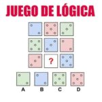 Siguiendo la lógica de las series en estos dados, ¿qué color y número de puntos tendrá la casilla con el interrogante?