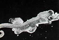 Un macho puede ser visitado por cierto número de hembras que le dejan huevos, pero si un huevo no alcanza a llegar a uno de estos departamentos, no se desarrolla. No obstante, los que caen bien, se desarrollan en esta bolsa hasta los 50 ó 60 días y eclosionan dentro ella.
