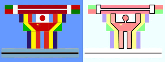 He adjuntado la imagen con la solución de las banderas, y luego he marcado lo que sería la resolución final del muñeco levantando pesas.