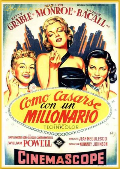 Como casarse con un millonario. Dirigida por Jean Negulesco, protagonizada por Marilyn Monroe , Betty Grable y Lauren Bacall como cazadores de fortuna