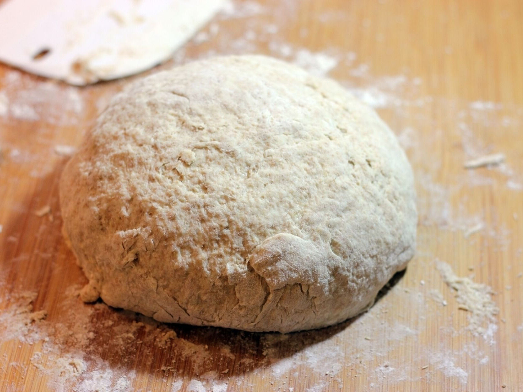 Sacamos la mezcla del bol y amasamos fuera del bol. Enharinamos la superficie de trabajo si así lo necesitamos.