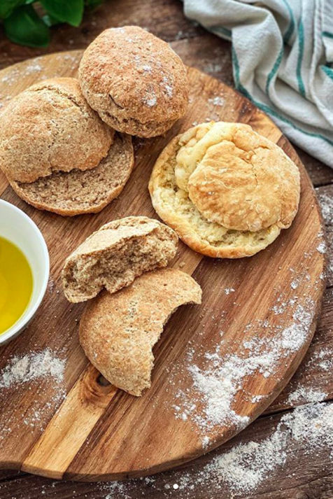 De nuevo se confía en el bicarbonato para no necesitar levadura, por lo que es uno de los panes más sencillo de preparar y con un resultado más apetitoso.