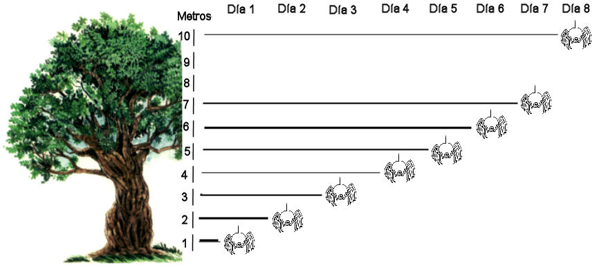 Tarda 10!!! no pueden ser tan idiotas…. si sube 1 x dia y son 10 metros…… sube 3, baja 2…… 3-2=1 para el q hizo el arbol.. el 8 y el 9 no cuenta !!??