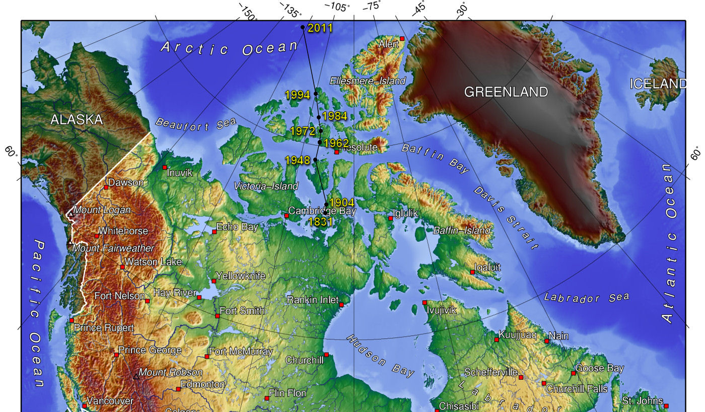 El Polo Norte magnético va cambiando de posición, aunque se ha descubierto que su evolución es más rápida desde comienzos del siglo XX. James Clark Ross encontró el Polo Norte por primera vez en el año 1831, tras un duro viaje por el océano Ártico en el que su barco quedó inmovilizado cuatro años a causa del hielo.