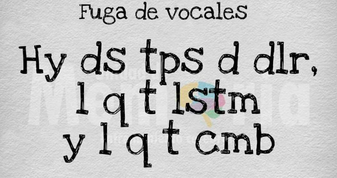 Adivina la frase entera simplemente fijándote en las consonantes que han quedado intactas y complétala con las vocales que falten. Es increíble comprobar cómo el cerebro puede rellenar los espacios vacíos para darle sentido a las frases inconexas. Puedes ver la solución en los comentarios.