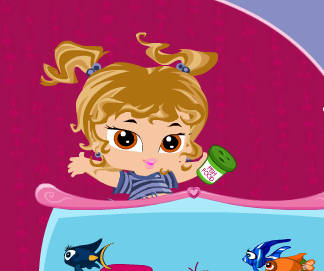 Juego de cuidar un acuario que es de la bebé Bratz, una muñequita adorable. Tendremos que dar de comer a los peces arrastrando el bote de comida en el agua. Podremos vender los peces y las peceras, para ganar más dinero y así poder comprar otros útiles e incluso peces, que también podremos criar.