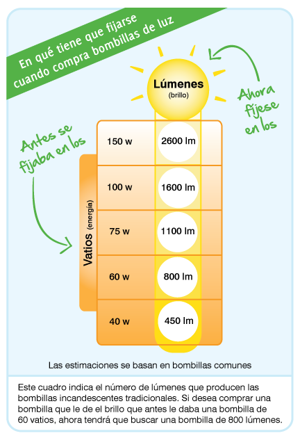 Con este gráfico os podéis guiar un poco en relación a la sensación luminica de los lúmenes, tomando como referencia las antiguas bombillas y los vatios que gastaban.