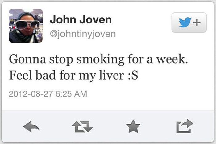 Voy a dejar de fumar durante una semana. Lo siento por mi hígado.