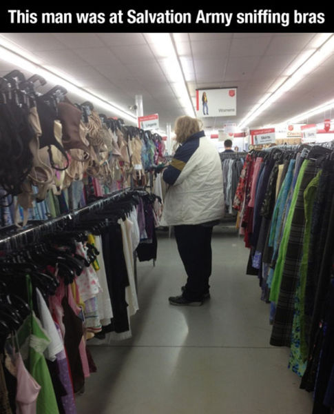 Este hombre estaba en una tienda Salvation Army olisqueando sujetadores.