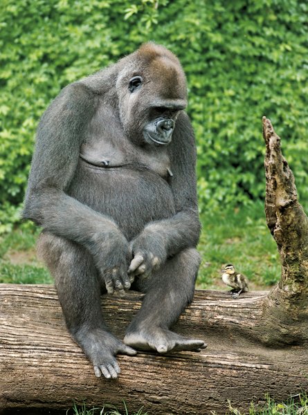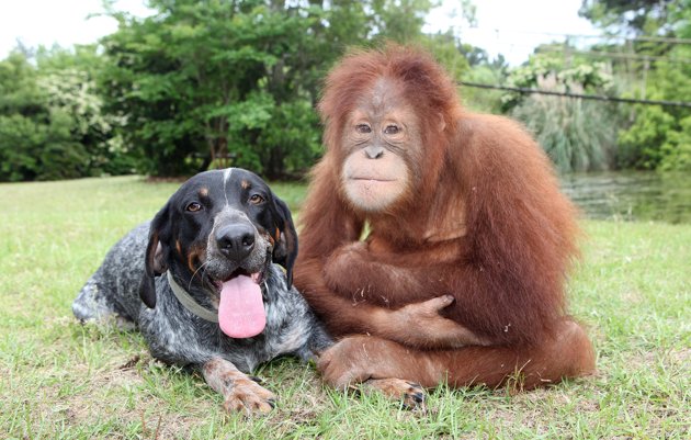 El orangután posando con el perro en las fotos me ha matado, son adorables.