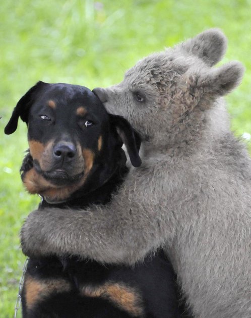 Algunas imágenes de animales diferentes profesándose cariño y amor incondicional. Lo raro de ellas, es que generalmente estos animales no suelen ser muy amigos en su medio natural o no suelen mezclarse: perros, gatos, tigres, cerdos, jirafas, avestruces, tortugas, hipopótamos, gallinas, conejos, ratones, sapos, cabras, patos y muchos más dándose mimitos.