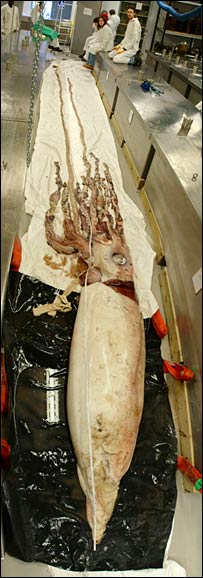 Como veis, las aguas profundas y los calamares gigantes siguen siendo todo un misterio. En la foto de abajo teneis un especimen encontrado en aguas asturianas el 3 de Noviembre del 2000, el cuál pertenecía a la especie “Taningia danae”.