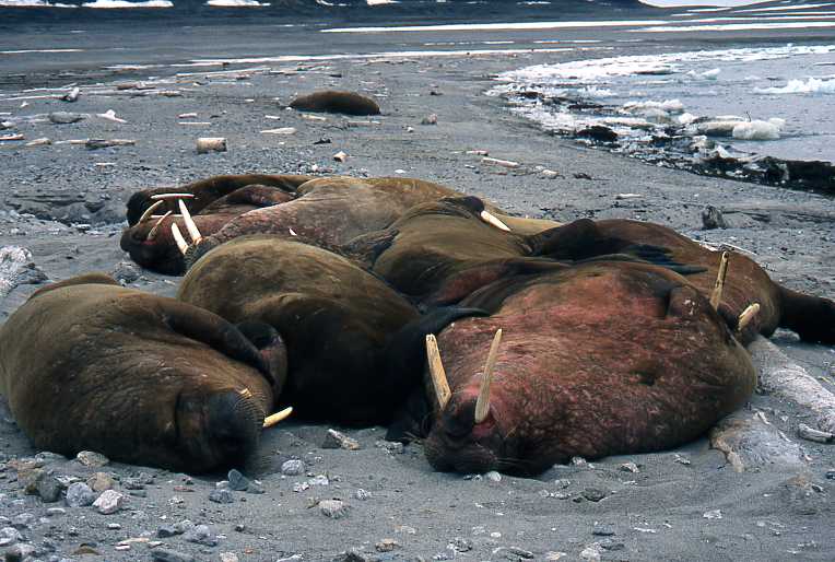 Las morsas pueden dormir en el agua sin ahogarse gracias a unas bolsas de aire que tienen en la garganta. En las rocas, también consiguen estar toda una semana dormitando apretujadas junto a sus hermanos.