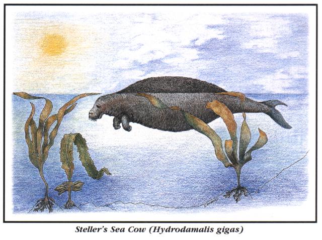 La vaca marina de Steller o Hydrodamalis gigas, fue un sirenio (mamífero placentario herbívoro) descubierto en 1741 frente a las costas asiáticas del mar de Bering por el naturista Georg Wilhelm Steller (1709-1746) mientras viajaba con el explorador Vitus Bering durante la segunda expedición a Kamchatka (1733-1743).
