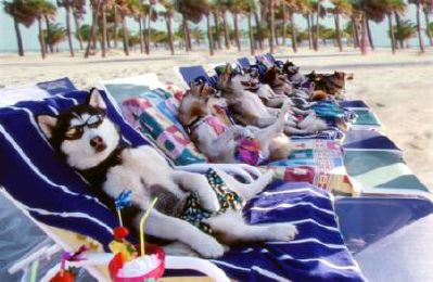 Aquí toda la compañía de perros de trineo de vacaciones paradisíacas.