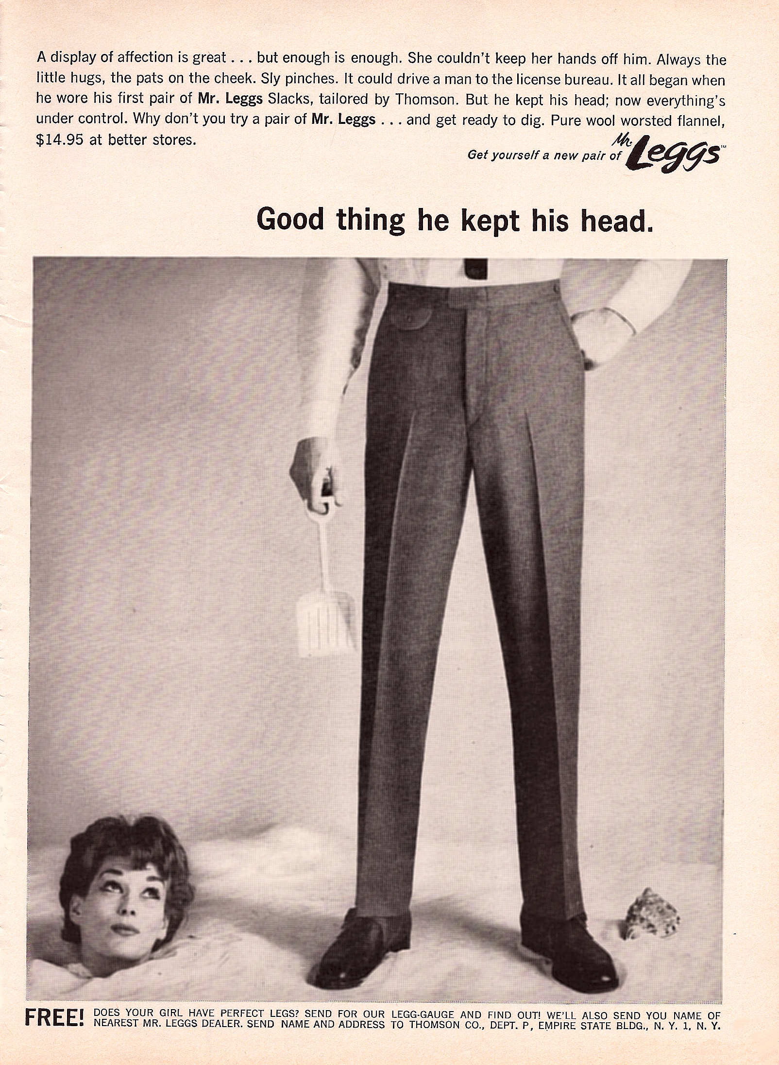 Es bueno tener una mujer en casa. Aunque ella era mujer tigre, nuestro héroe no necesitó pegarle un tiro para derribarla. Tras un vistazo a sus pantalones Mr. Leggs, estuvo preparada para que él pudiese caminar sobre ella. ¡Ese majestuoso estilo tranquiliza un corazón salvaje! Si quieres tu propia alfombra de muñecas, caza un par de estos pantalones Mr. Leggs para hombre.
