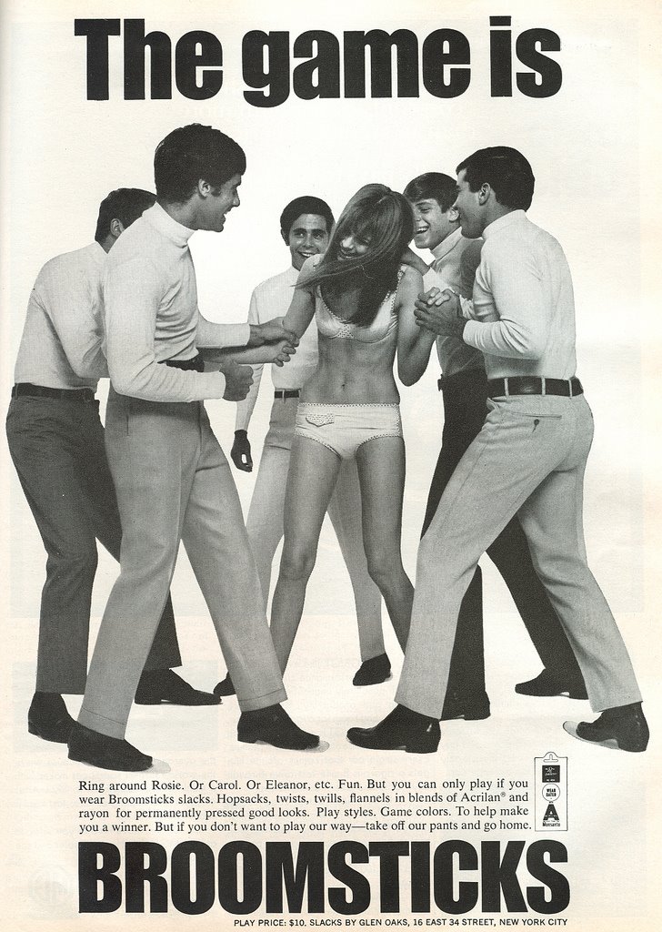 El juego es Broomsticks. Rodea a Rosie, o Carol, o Eleanor, etc. Divertido. Pero sólo puedes jugar si usas pantalones Broomsticks. Para ayudarte a ser un ganador.