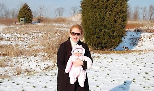 Mientras Nicole Kidman :D sostiene a su hija, por detrás vemos a un perro (o algo parecido) haciendo popó.