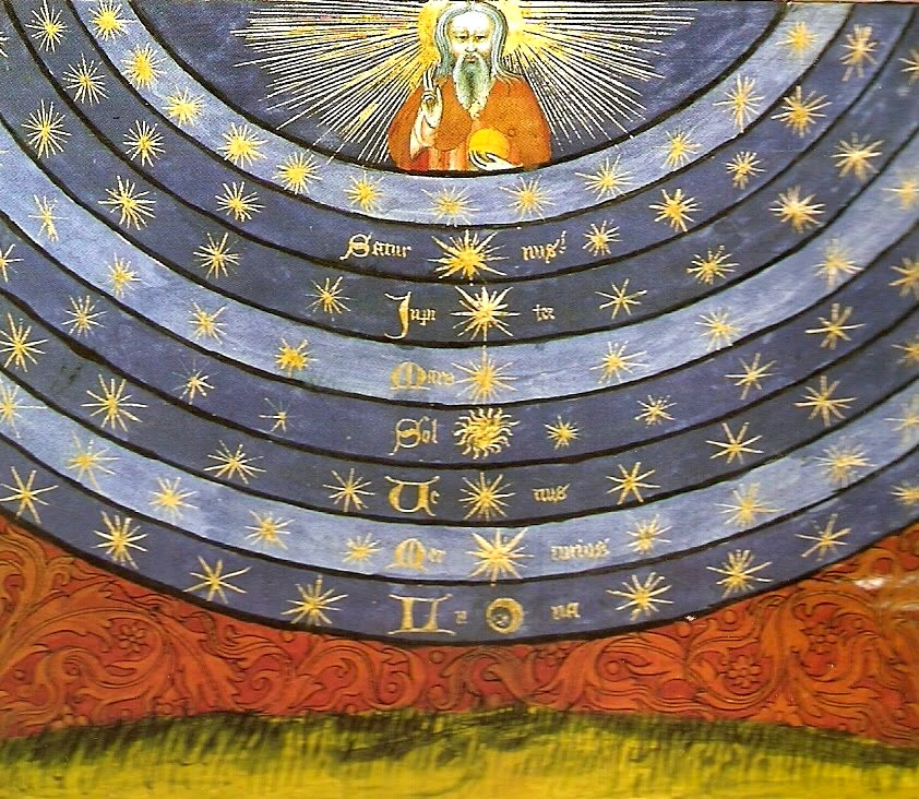 Pero por encima de la Luna, en cambio, los objetos están compuestos por un quinto elemento inmutable, la quintaesencia. Los cuerpos celestes se desplazan eternamente en un movimiento circular; el Sol, la Luna y las estrellas llevan toda la eternidad desplazándose alrededor de la Tierra, que se halla en el centro de todos ellos. Se da aquí una hermosa paradoja, puesto que la Tierra, el centro, es también la única parte del universo en la que se manifiestan el cambio y el declive.