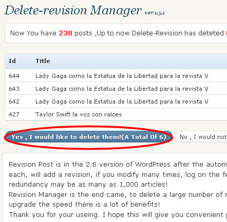 Tras un rastreo, nos mostrará todas las revisiones que podemos eliminar. Tan sólo deberemos elegir la opción YES, I WOULD LIKE TO DELETE THEM! para librarnos de esas molestas revisiones.