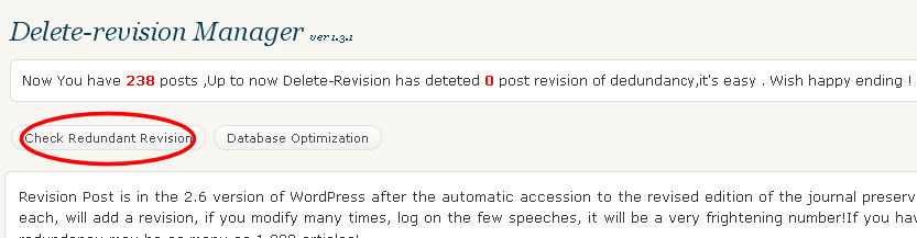 Una vez instalado este plugin, iremos al panel de opciones del mismo, y elegiremos la opción CHECK REDUNDANT REVISION.