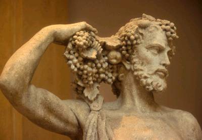 Baco para los griegos, o Dioniso para los romanos, era el dios del vino, hijo de Júpiter y Sémele. Nació en la isla de Naxos y Mercurio le llevó a Arabia a la mansión de las ninfas de Nisa, que le cuidaron y alimentaron en aquellas montañas. Sileno le enseñó a plantar la viña y las musas le enseñaron canto y danza.