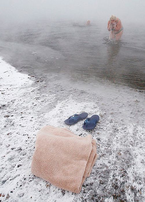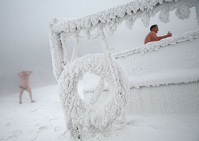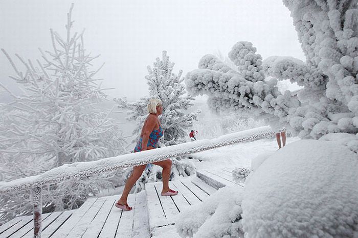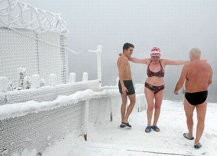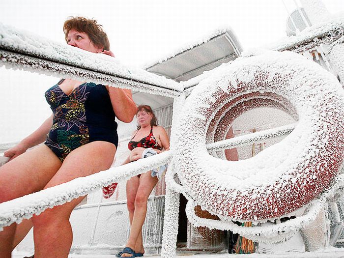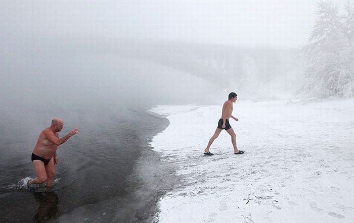 Estos miembros de un club de nadadores de invierno de la ciudad siberiana de Krasnoyarsk, nos muestran que no hay que temer al frío. Aunque la temperatura sea de varios grados bajo cero, uno se puede bañar en el río ruso Yenisei sin problema.