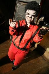 – El lider del grupo que imita a Michael Jackson como Mekill Hacksaw. El juego de palabras no lo entiendo, pero debe ser algo así como “Yomato consierras”.