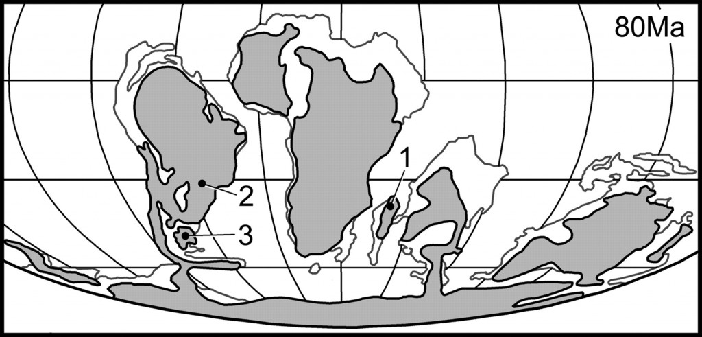 De esta manera, según el profesor David Krause, tuvo que haber existido una unión terrestre con América del Sur en dicha época, probablemente a través de la Antártida, que debió ser mucho más cálida que en la actualidad.