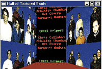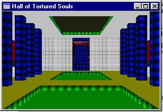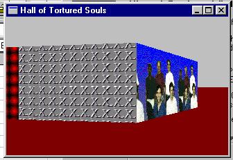 7. Se mostrará una ventana con el título: ”THE HALL OF TORTURED SOULS” (La habitación de las almas torturadas). Este es un programa parecido al juego Doom, en el que podemos movernos empleando las teclas del cursor. En las paredes veremos los nombres de las almas torturadas en movimiento…