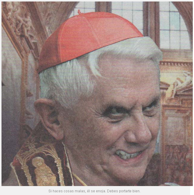 Hoy leí en la página de Jenny el artículo «Cómo denunciar un blog de Blogger», donde contaba haber encontrado un blog cuyo nombre lo dice todo: «No hay pederastia en la Santa Iglesia Católica» (http://nohaypederastiaenlaiglesia.blogspot.com)… no, no hay… ¡no ni poco!. Yo me he quedado flipando, porque no entiendo muy bien de qué va esta gente (ya que no es un blog sólo, sino que existen varios parecidos) y hasta podría parecer un blog de esos de coña, como el de Bakala007.