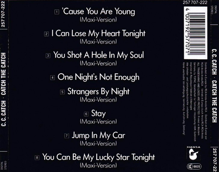 «Cause you are young» fue el segundo sencillo que publicó C.C. Catch de su primer disco, «Catch the catch» (1985), el cual fue número uno en Alemania, España y la antigua Yugoslavia, o puesto dos en Bélgica, y en definitiva, todo un clásico de la música disco europea (italo disco) de los 80.