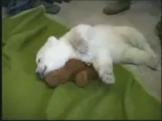 En el vídeo podemos ver al osito polar Knut comiendo, casi durmiéndose mientras lo cepillan y jugando con su criador, papeles y hasta un oso de peluche. El vídeo es de hace 4 años, cuando el oso nació en cautividad en el zoológico de Berlín y fue rechazado por su madre. Knut ha muerto recientemente hace un mes.