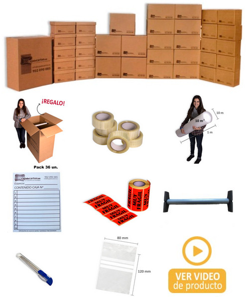 Otra de las ventajas de estos packs es que nos salen a mejor precio que adquiriendo las cajas sueltas, así que nos ahorraremos un dinerito que siempre nos viene bien. Disponemos de varias Ofertas en cajas para mudanzas que incluyen algunas de regalo, y diferentes complementos muy útiles para la mudanza, como cintas adhesivas para sellar cajas; plásticos de burbujas para proteger los objetos más delicados; etiquetas para identificar contenidos de cajas y otras de «muy frágil»; percheros para la ropa; cutters o bolsas vacías para empaquetar.