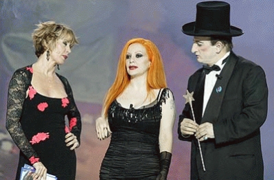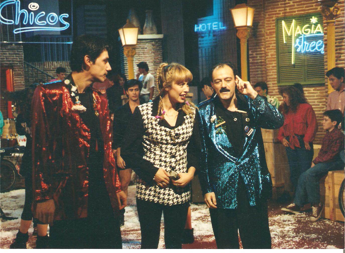 Con Los payasos de la tele a la izquierda; con Alaska y Javier Gurruchaga a la derecha.