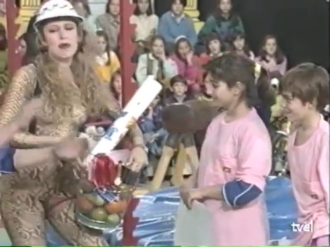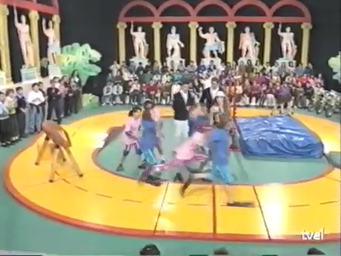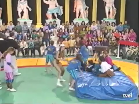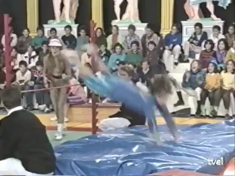 Recuerdo un capítulo de ‘Lapices de Colores’ que había dos luchadores de lucha libre en un ring y no paraban de pelearse hasta que subió Míriam Díaz Aroca, y tras separarlos fue ella quien con llaves y puñetazos los dejó a los dos KO, ¡que tía!, ¿no tendrás el video de ese programa? Muchas gracias.