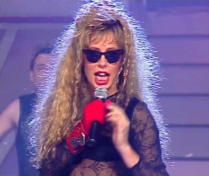 También Míriam Díaz Aroca se marcaba sus propias coreografías y cantaba, de hecho recuerdo haberla visto realizar el baile del videoclip «Material Girl» de Madonna.