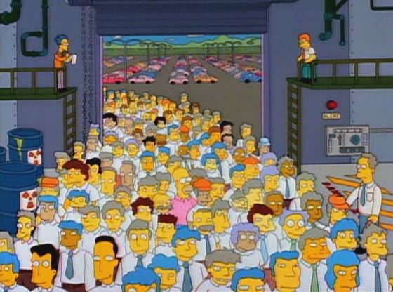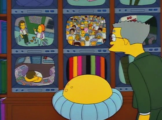 Muy bueno este trozo de capítulo de Los Simpson, es normal que te sientas identificado yo he trabajado también en algún lugar con cámaras y la verdad es que es incómodo, uno no tiene tiempo ni pa rascarse.