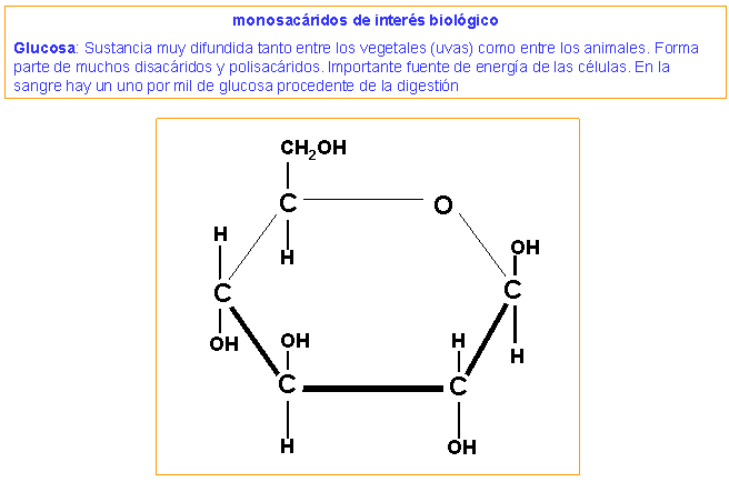El dibujo de abajo muestra el azúcar común glucosa, el tipo de azúcar que utiliza el cuerpo humano como energía y que aparece en todas las células vivas. Hay muchos tipos de azúcares, todos los cuales tienen una estructura generalmente similar.