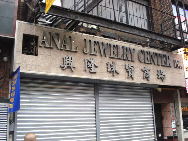 Centro de joyería Anal. Me extraña el nombre, porque no es una coincidencia de significado diferente en nuestro idioma, ya que «anal» siginifica lo mismo en inglés, y las palabras están escritas en dicho idioma.