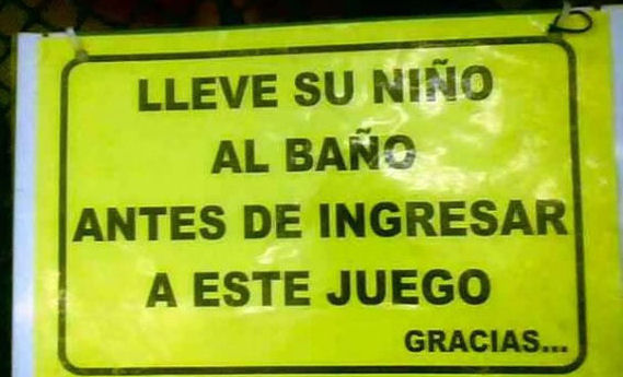 Otra nota en Colombia: Lleve a su niño al baño antes de ingresar a este juego. Gracias…