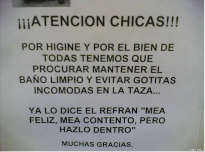 Ya lo dice el refrán «Mea feliz, mea contento, pero hazlo dentro». Muchas gracias.
