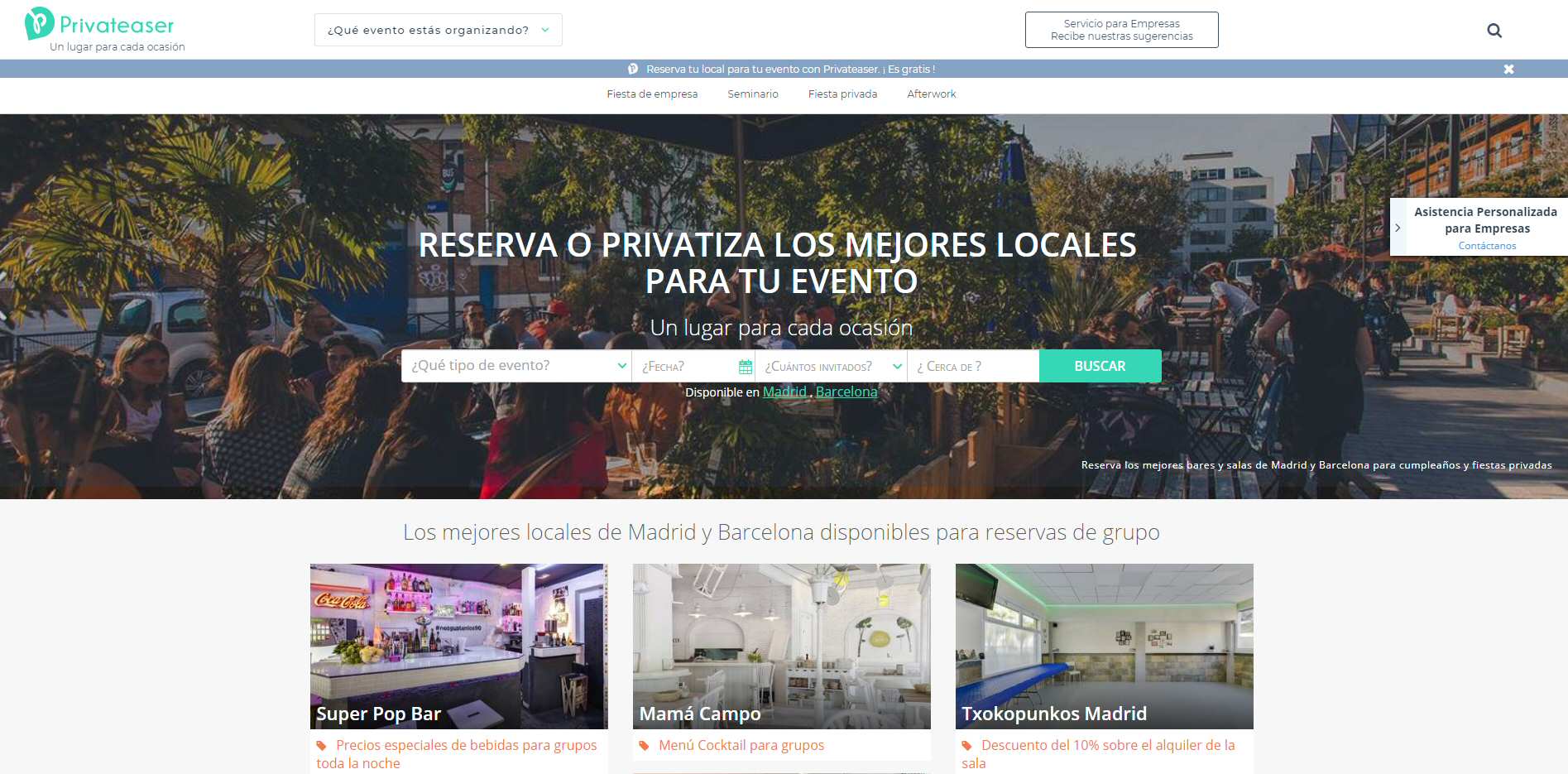 Con Privateaser es más fácil elegir el sitio adecuado y gestionar la reserva, agilizando la organización y selección del evento con unos pocos clics. Así no tendremos que preocuparnos por nada y conseguiremos que nuestro evento sea todo un éxito.
