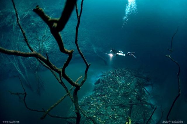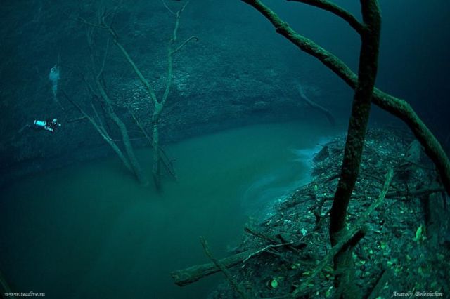 Si te gusta el buceo profesional, deberías visitar el cenote Angelita, en Mexico. El cenote es un accidente geográfico que consta de un valle profundo inundado de agua, formado por la acción corrosiva de esta para formar el curso fluvial. Así, el techo cae y existen varios cenotes subterráneos, o más abiertos al cielo como este.