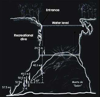 Hola, que bien por el dato. Un favor, por ahi mandas un corte del cenote que hace referencias a unas ubicaciones en el fondo, me podrias decir de que se tratan? y quien es quien elaboro el plano. Gracias