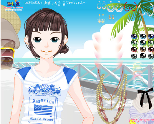 Nuestra chica va a dar un paseo por la playa, así que debes vestirla, maquillarla y ponerle complementos como gorras, sombreros, pendientes, gafas de sol, collares, pañuelos para el cuello. Le podrás maquillar los pómulos, los ojos y pintarle los labios. Así podrá disfrutar de sus amigas en la salida a pasear.