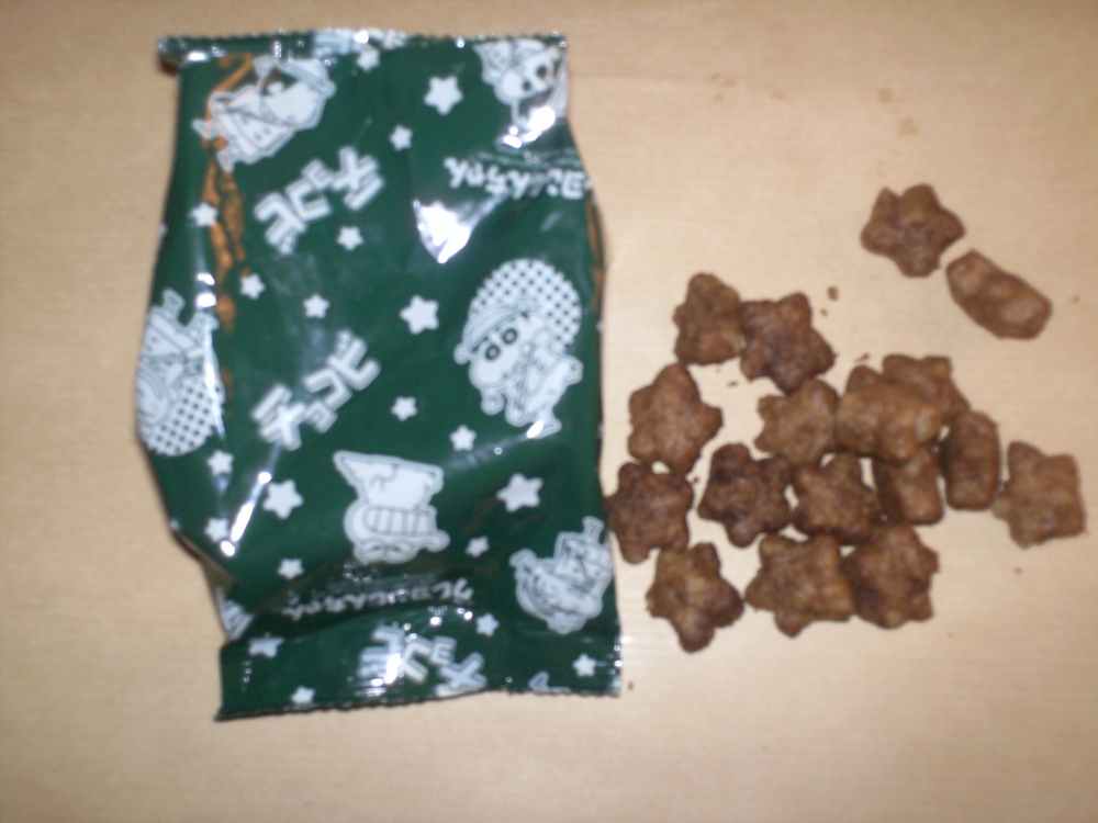 Estas son galletitas de Shin Chan, que son como pequeñas estrellitas muy similares a los Chocapic que conocemos, aunque más suaves.