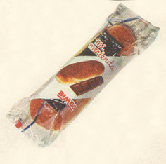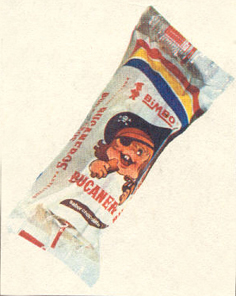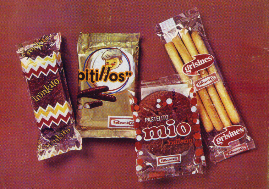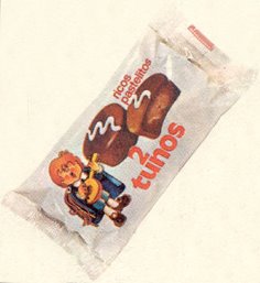 Recuerdo unos pastelitos de Bimbo (creo) de forma triangular, recubiertos de chocolate, que venían en un envoltorio que podía ser rojo, verde o azul.