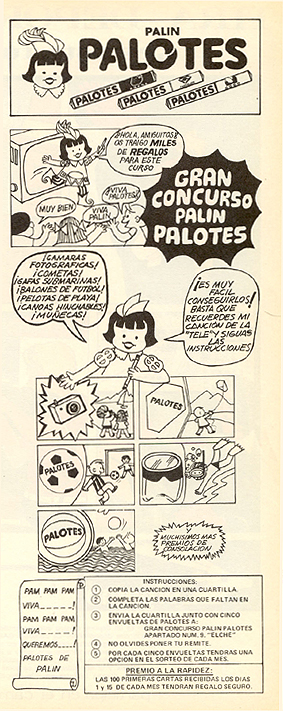 ESCALOFRIOS, PICOLANDIA, BOLITAS DE ANIS, RETONES DE GOMINOLA (EMULANDO A LA SERIE «V») Y TODOS AQUELLOS CHICLES DE «MERCHANDISING» QUE SALIAN SEGÚN LA MODA DEL MOMENTO… 1,2,3; EL PULGA Y EL LINTERNA (1,2,3) … Y CLARO…, COMO SORTEABAN MAS CHICLES Y DINERO EN EFECTIVO, COMPRABAMOS 30 CHICLES CADA UNO Y AUN GANABAMOS PASTA AUNQUE NO PUDIERAMOS HABLAR… LO MISMO PASABA CON LAS PATATAS MATUTANO Y LOS HELADOS COMO EL MIKOLAPIZ, EL PATAPALO, ETC…
