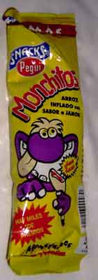 Los monchitos, que son granos de arroz inflado con especias mezcladas de difícil clasificación (¿podría ser pimentón?).